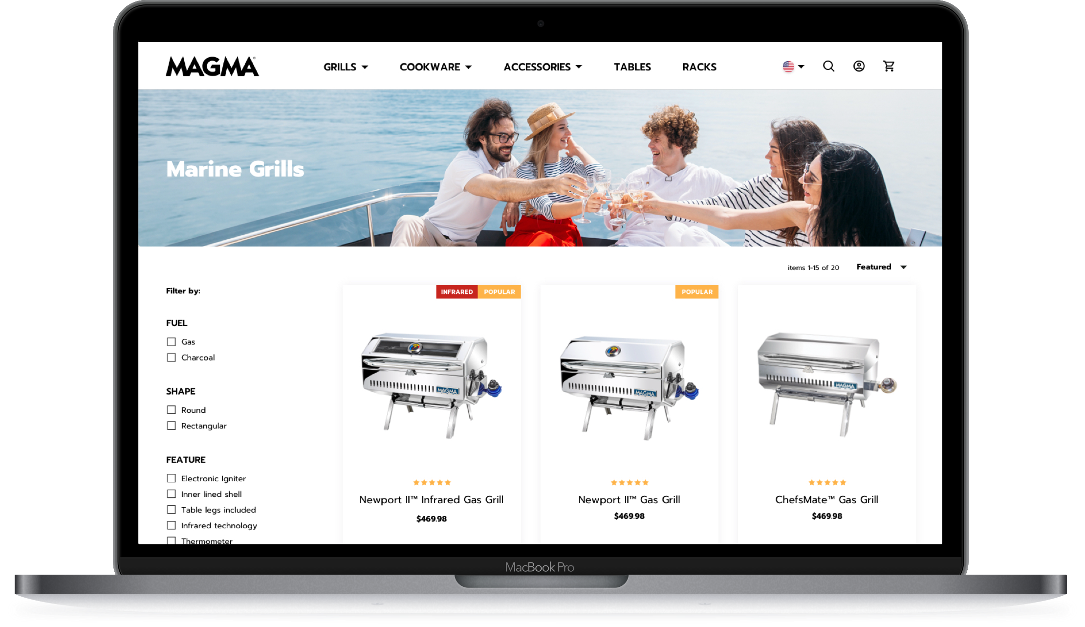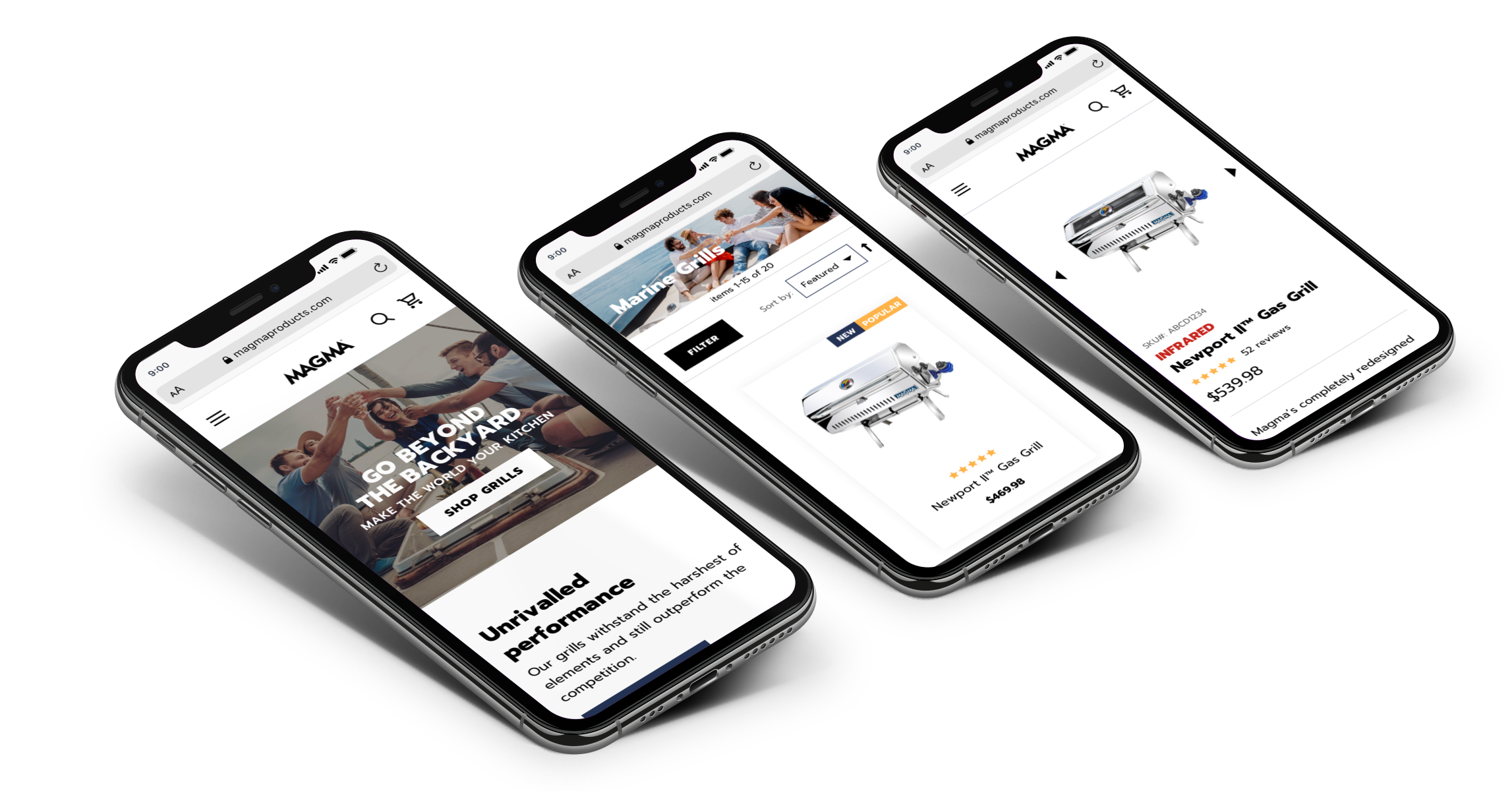 With a 5x growth in overall sales and only a fraction on their own website, Magma came to us looking to dock their old site and launch a new one with an updated design and improved functionality. The new site needed to educate potential customers about their products and have an easy-to-use checkout. The design had to evoke the feeling of celebration and the fun of sharing burgers on a boat with buds. And, most importantly, it had to leave the competition in their wake.